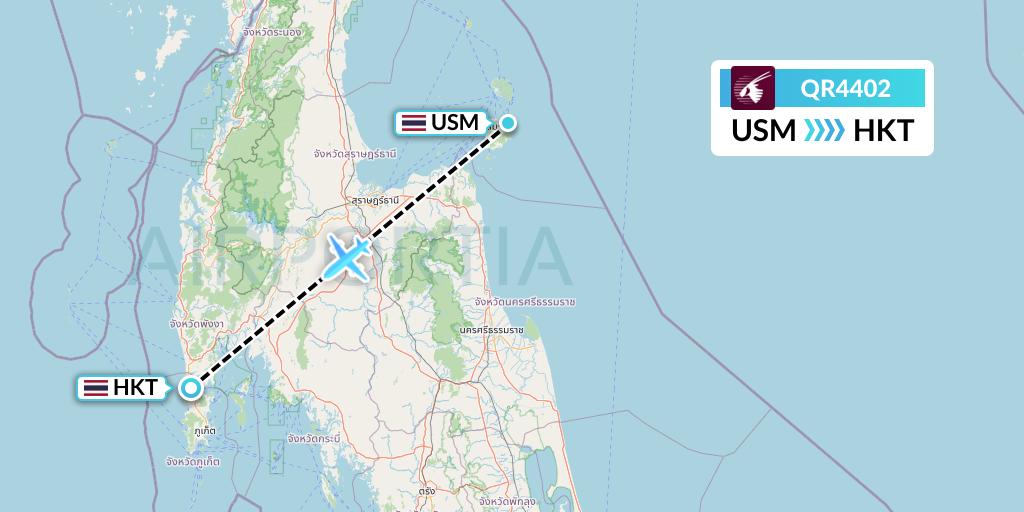 Qatar Airways Flight QR4402 connects Koh Samui, Thailand to Phuket, Thailand, taking off from Koh Samui Airport USM and landing at Phuket International Airport HKT.