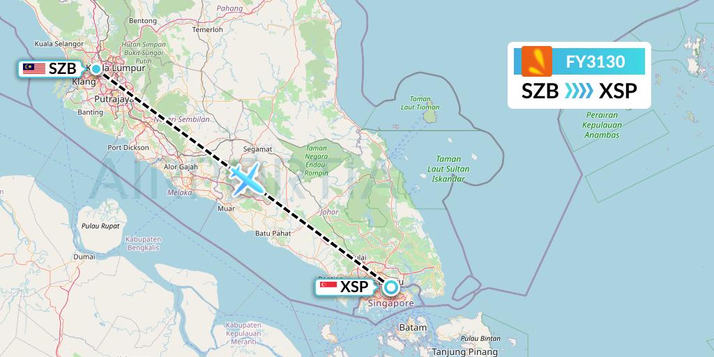 Firefly Flight FY3130 connects Kuala Lumpur, Malaysia to Seletar, Singapore, taking off from Kuala Lumpur Subang Airport SZB and landing at Seletar Airport XSP.