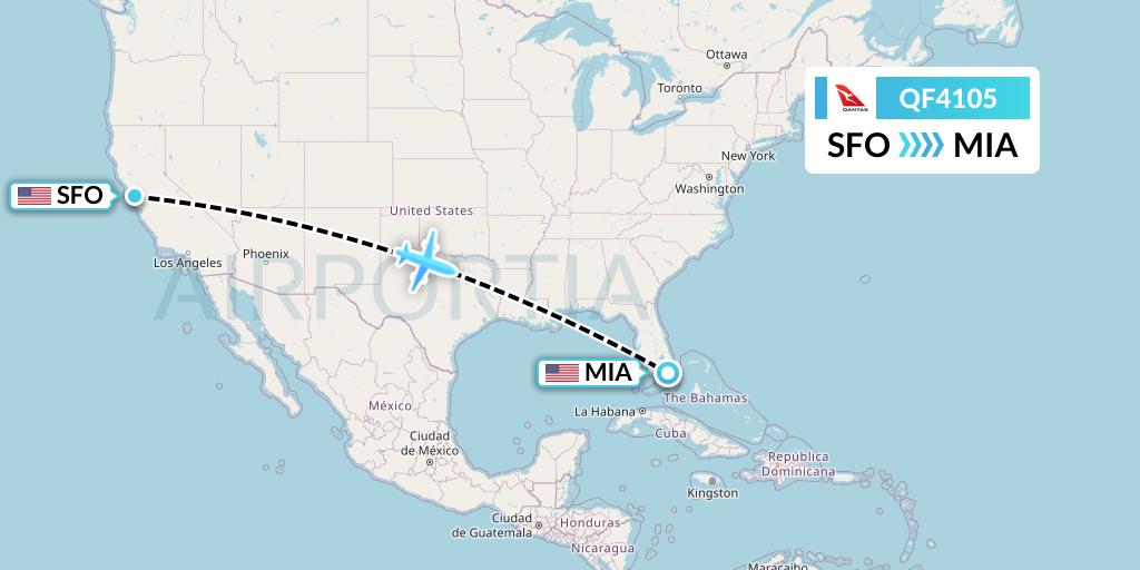 Qantas Flight QF4105 connects San Francisco, United States to Miami, United States, taking off from San Francisco International Airport SFO and landing at Miami International Airport MIA.