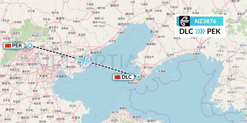 Air New Zealand Flight NZ3876 connects Dalian, China to Beijing, China, taking off from Dalian Zhoushuizi International Airport DLC and landing at Beijing Capital International Airport PEK.
