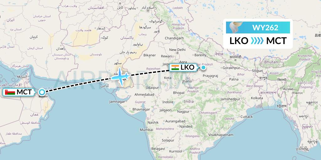 Oman Air Flight WY262 connects Lucknow, India to Muscat, Oman, taking off from Lucknow Chaudhary Charan Singh Airport LKO and landing at Muscat International Airport MCT.