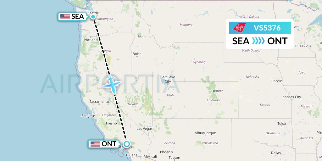 Virgin Atlantic Airways Flight VS5376 connects Seattle, United States to Ontario, United States, taking off from Seattle Tacoma International Airport SEA and landing at Ontario International Airport ONT.