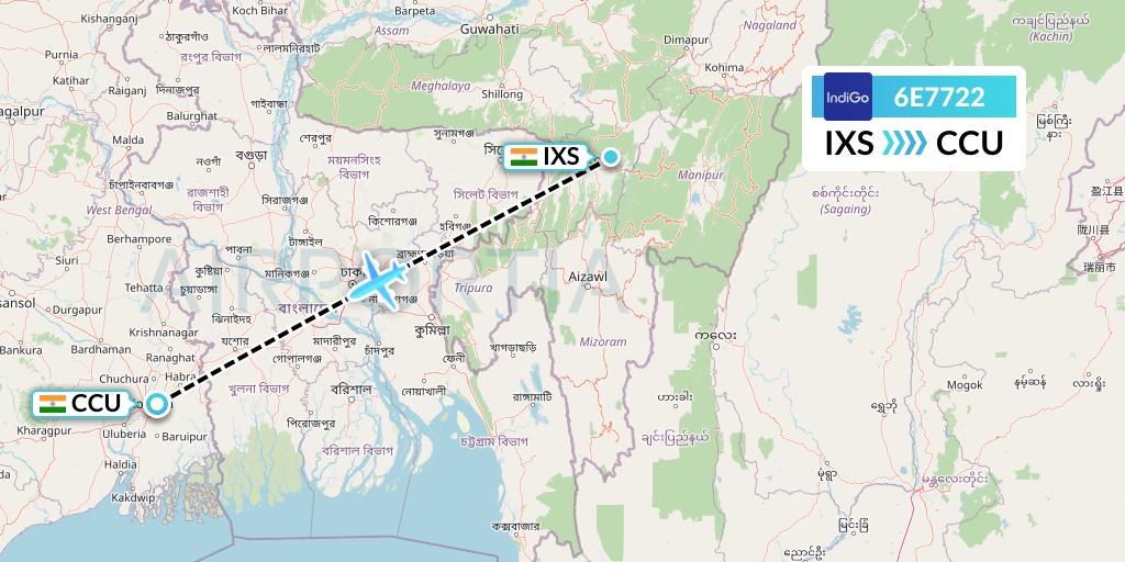 IndiGo Airlines Flight 6E7722 connects Silchar, India to Kolkata, India, taking off from Silchar Airport IXS and landing at Kolkata International Airport CCU.