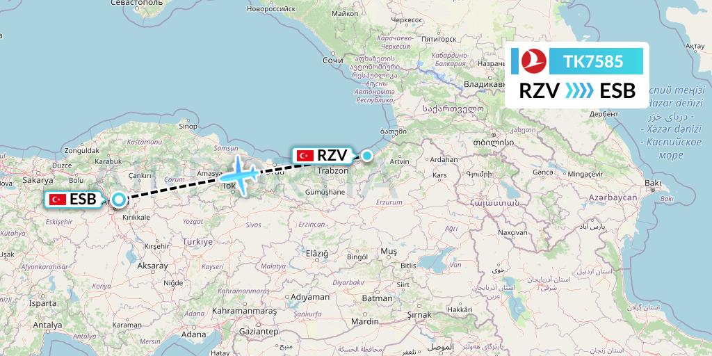 Turkish Airlines Flight TK7585 connects Trabzon, Turkey to Ankara, Turkey, taking off from Rize-Artvin Airport RZV and landing at Ankara Esenboga International Airport ESB.