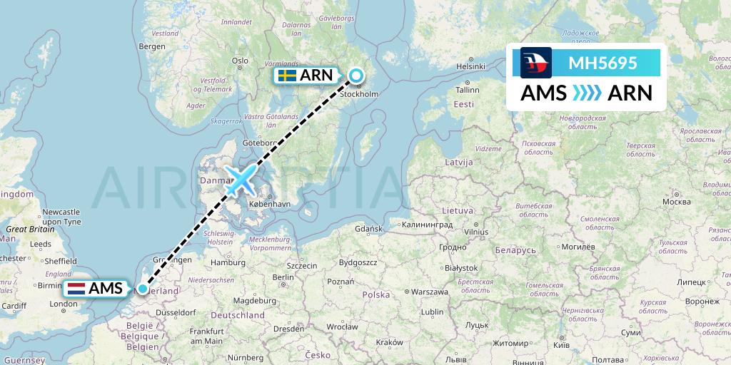 Malaysia Airlines Flight MH5695 connects Amsterdam, Netherlands to Stockholm, Sweden, taking off from Amsterdam Schiphol Airport AMS and landing at Stockholm Arlanda Airport ARN.